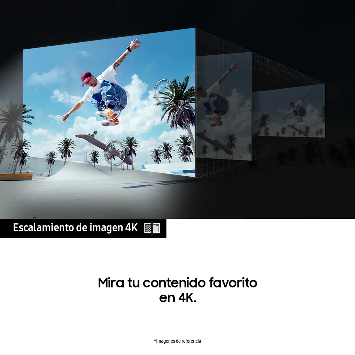 Escalamiento de imagen 4K mediante Mejora 4K (AI Upscaling), que optimiza contenido de menor resolución hacia calidad similar a 4K.