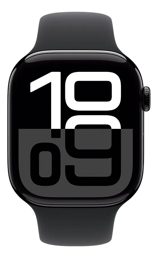 Apple Watch Series 10 GPS • Caja de aluminio negro azabache de 46 mm • Correa deportiva negra